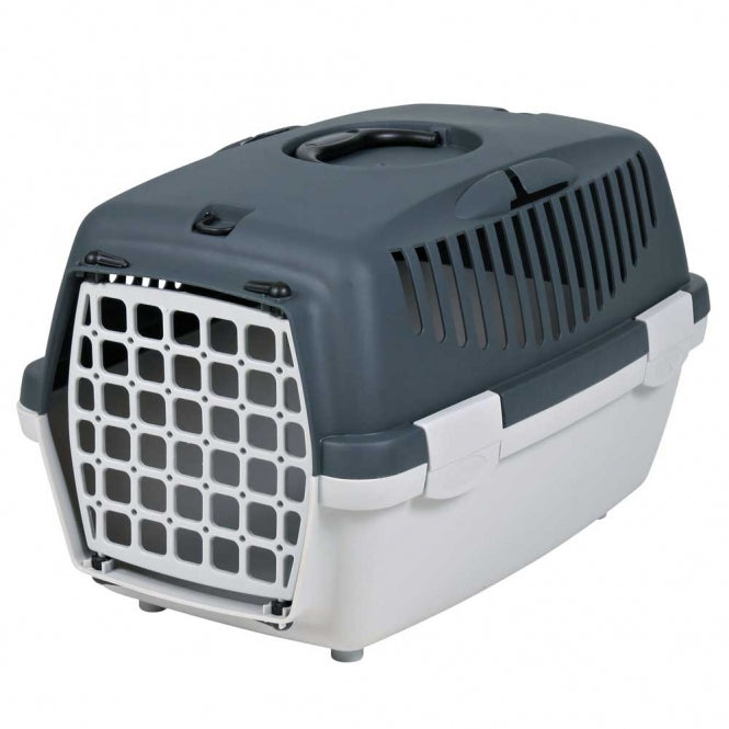 Die Transportbox Capri bietet Katzen und kleinen Tieren einen stabilen Platz für Tierarztbesuche oder kurze Fahrten. Die Belüftungsschlitze sorgen für eine gute Luftzirkulation, während der Tragegriff den Transport erleichtert. Mit der integrierten Vorrichtung lässt sich die Box zudem im Auto sicher befestigen.