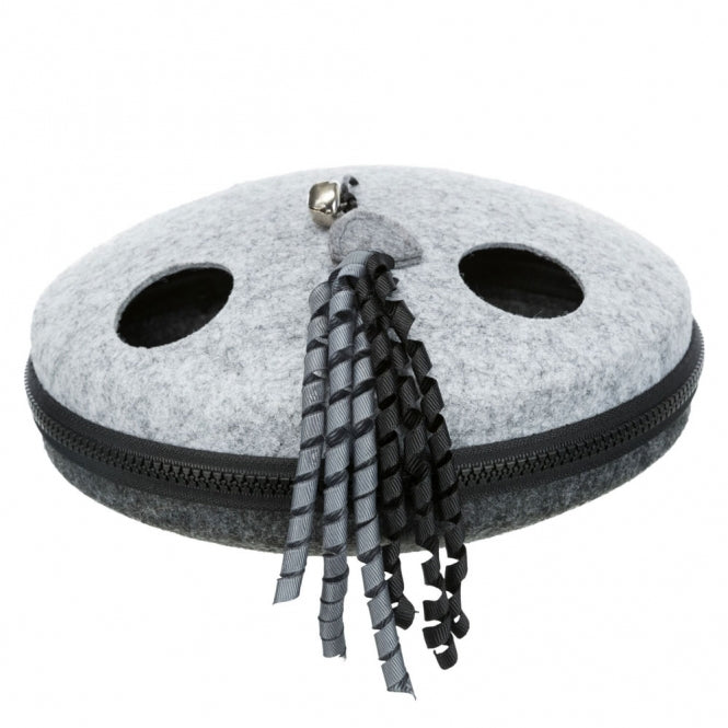 Im Inneren verbirgt sich ein rasselnder Ball – und Platz für weitere Spielzeuge. Das Filzmaterial macht das Spiel leise, aber intensiv. So bleibt deine Katze geistig und körperlich aktiv.